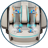The advanced real-time body scan ensures a consistently accurate massage throughout your session. As you shift in the chair, the massage heads adapt and move with your body, precisely targeting the key pressure points along your back.