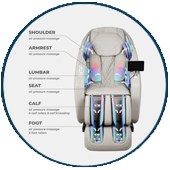 Every time the Osaki Kairos 5D + 4D massage chair powers on, it performs a comprehensive Body Scan. This smart detection system analyzes your body’s contours and dimensions to deliver a massage that’s accurately customized to your needs.